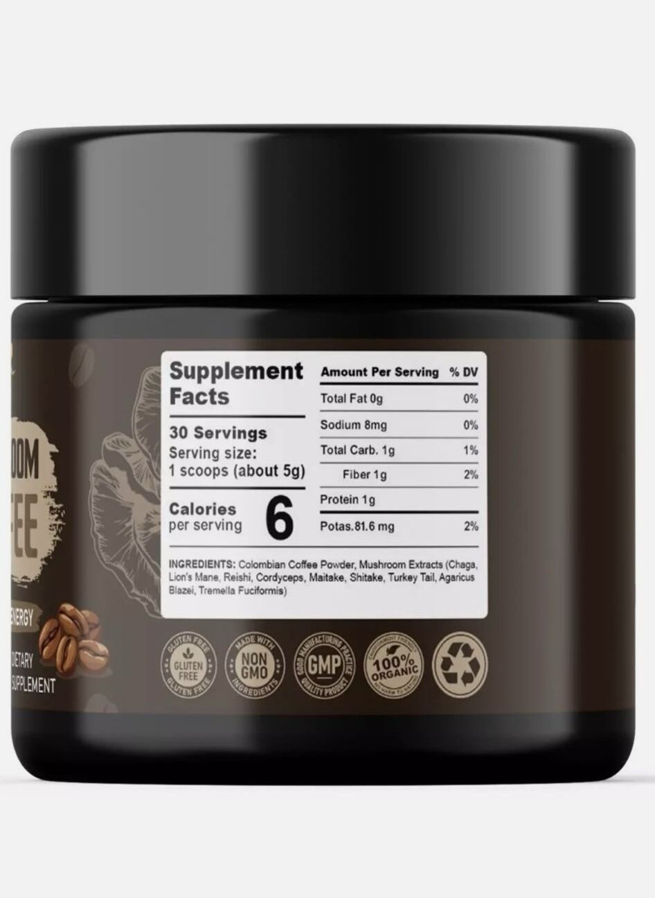 مزيج من القهوه كولومبيا منزوعه الكافيين ، و 10 انواع من المشروم العضوي الذي يفيد في :
