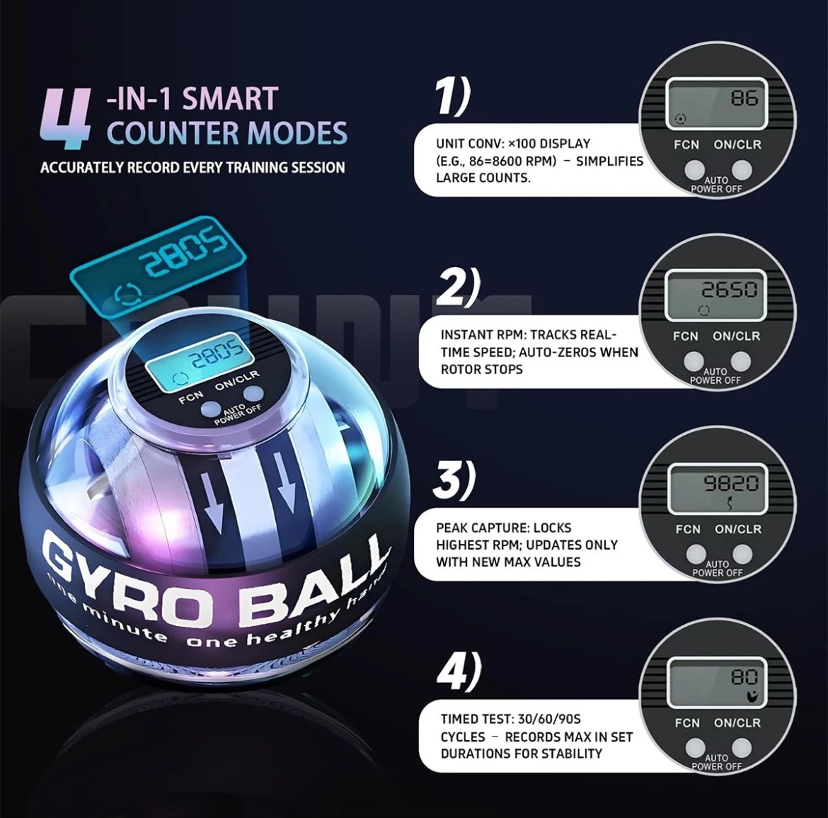 [تدريب المقاومة المتغيرة] اعتمادا على سرعة الدوران، فإنه يولد مقاومة تدريجية من 0-50 رطلا (أي ما يعادل 50 رطلا) لضبط شدة التمرين. يزيد الدوران الأسرع من المقاومة، بدءا من سحب إعادة التأهيل الخفيف إلى تدريب القوة عالي الكثافة (حتى 50 رطلا). إنه مثالي للإحماء والتعافي وتدريب القوة التدريجي. [بيئة العمل] مريح وغير قابل للانزلاق، ويوفر قبضة آمنة حتى عندما تتعرق. تأتي كرة تمرين المعصم الجيروسكوبية مع حقيبة تخزين لسهولة الحمل. استخدمه في المنزل أو في المكتب أو أثناء التنقل. [بداية بلمسة واحدة] لا حاجة للأسلاك! ما عليك سوى الضغط للبدء في ممارسة معصميك وأصابعك وساعديك. يبدأ ويدور تلقائيا لتعزيز قبضتك – وهو مثالي لمشاهدة التلفزيون أو القراءة أو أخذ استراحة من العمل.